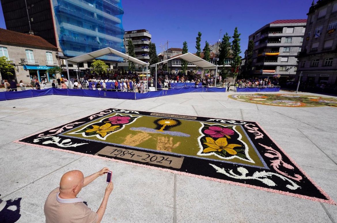 Los alfombristas de La Orotava participaron, como ya es habitual, en el Corpus Christi de Ponteareas