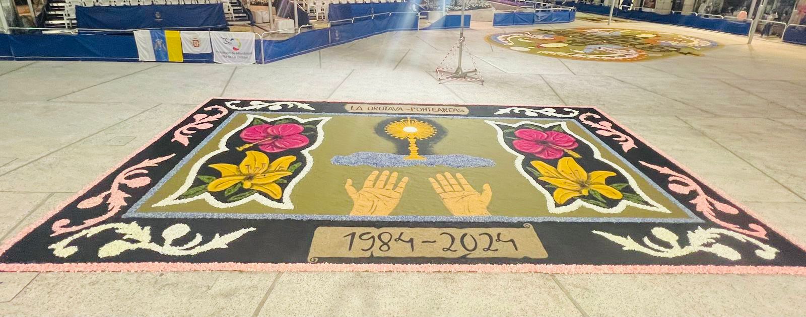 Los alfombristas de La Orotava participaron, como ya es habitual, en el Corpus Christi de Ponteareas confeccionando un magnífico tapiz de flores. Enhorabuena por el gran trabajo al equipo orotavense.