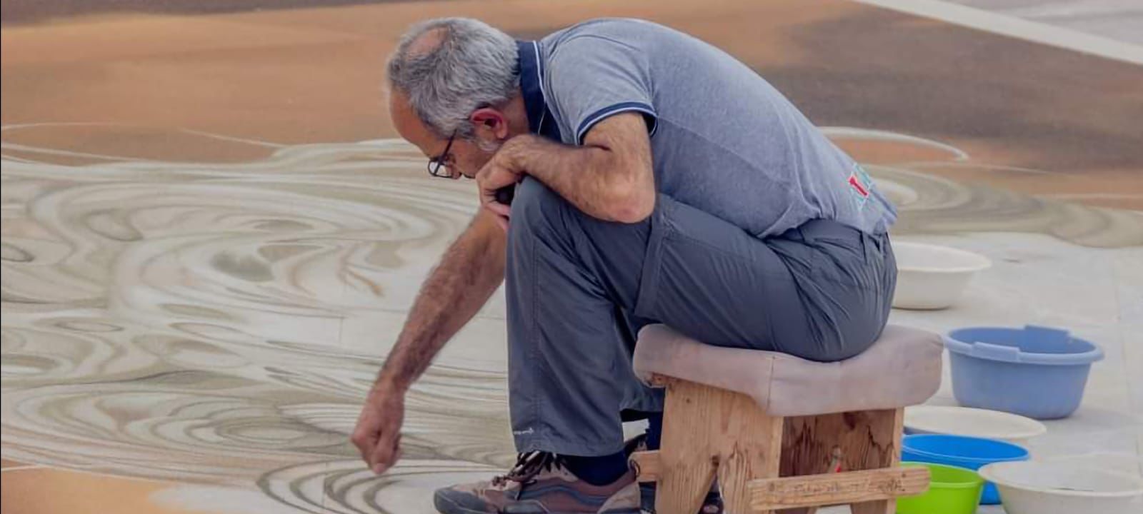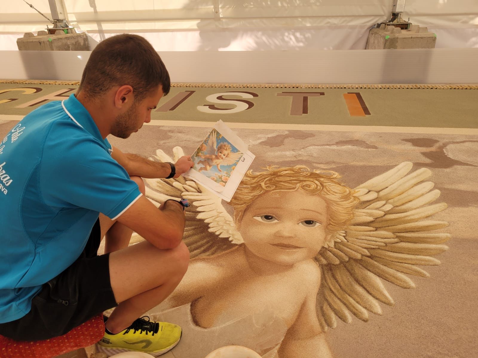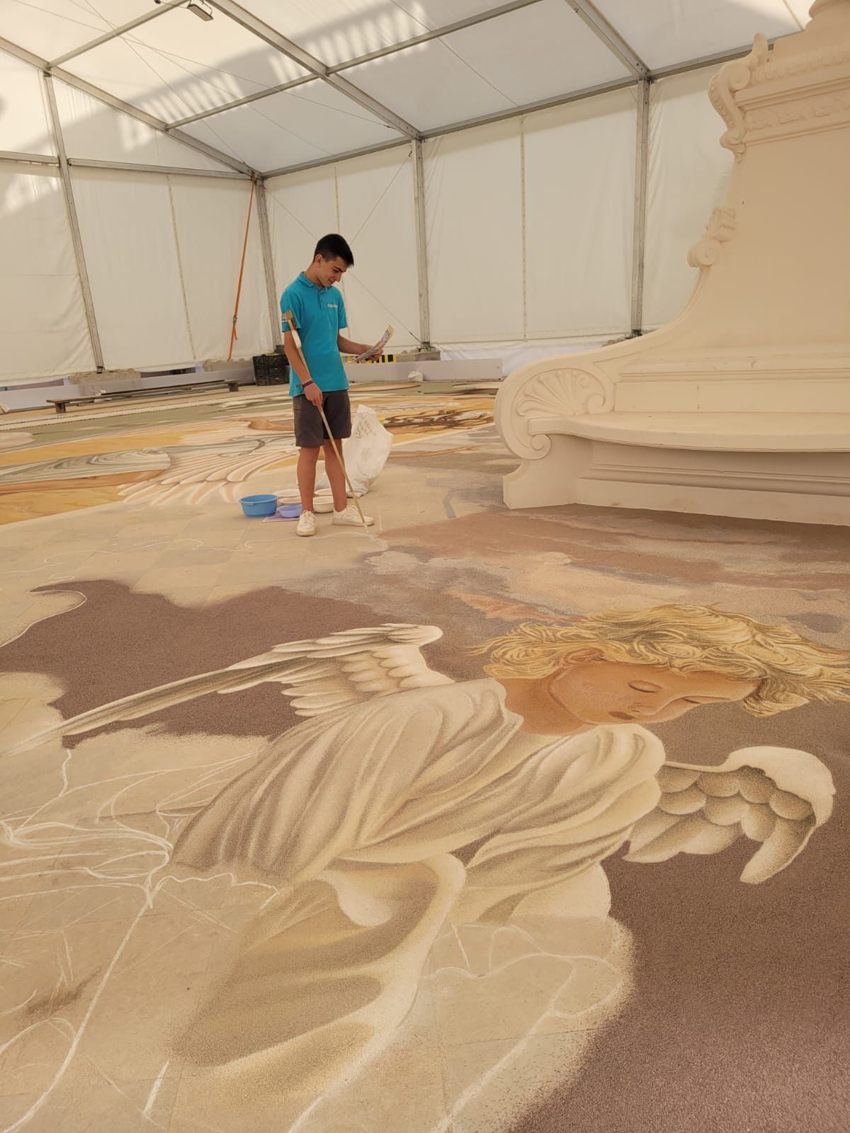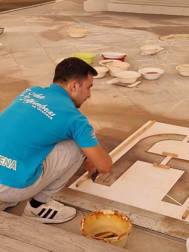 Los maestros alfombristas, embajadores de nuestro arte efímero, ya se encuentran con los últimos detalles del magno tapiz confeccionado con arenas naturales del parque nacional del Teide.