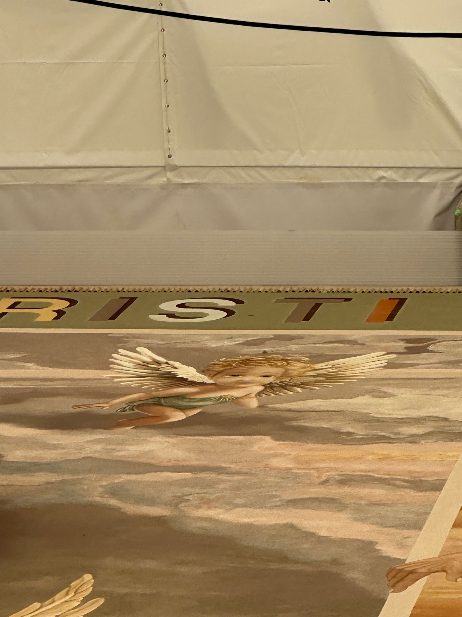 Este año la Alfombra de la Plaza del Ayuntamiento, que dirige Domingo González Expósito, representa en un solo tapiz al cielo.