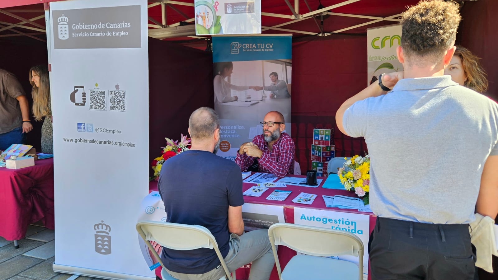 A lo largo de la jornada se llevaron a cabo talleres para realizar el currículo, cómo hacer una entrevista de trabajo, búsqueda de empleo, orientación laboral, emprendeduría... Algunas de las empresas participantes realizaron entrevistas a personas que están buscando trabajo, y el Servicio Canario de Empleo ofreció las ofertas actuales de empleo y realizó entrevistas.