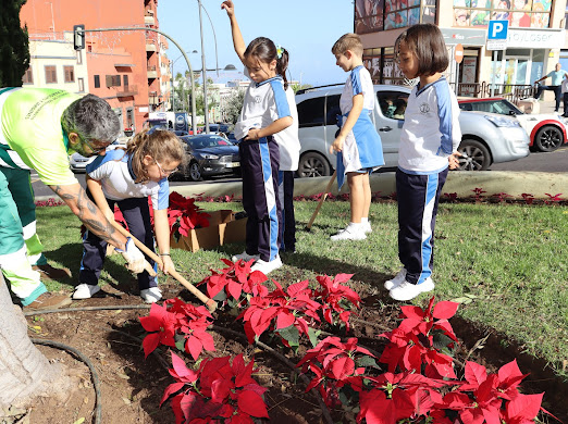 En estos días los jardineros municipales de la empresa concesionaria Raga, encargada del mantenimiento de las zonas verdes de la Villa, plantan unas 4.000 flores de pascua por el municipio para ornamentar y ambientar más La Orotava en esta fecha navideña con esta planta propia de esta época del año. La plantación se realiza tanto en la zona centro como en los barrios de esta localidad. Pero en estos días han contado con esta colaboración en dos puntos de la zona centro para que los pequeños de la casa se involucren también en ser partícipes en labores importantes para su pueblo, a la vez de disfrutar con la actividad y aprender jugando.