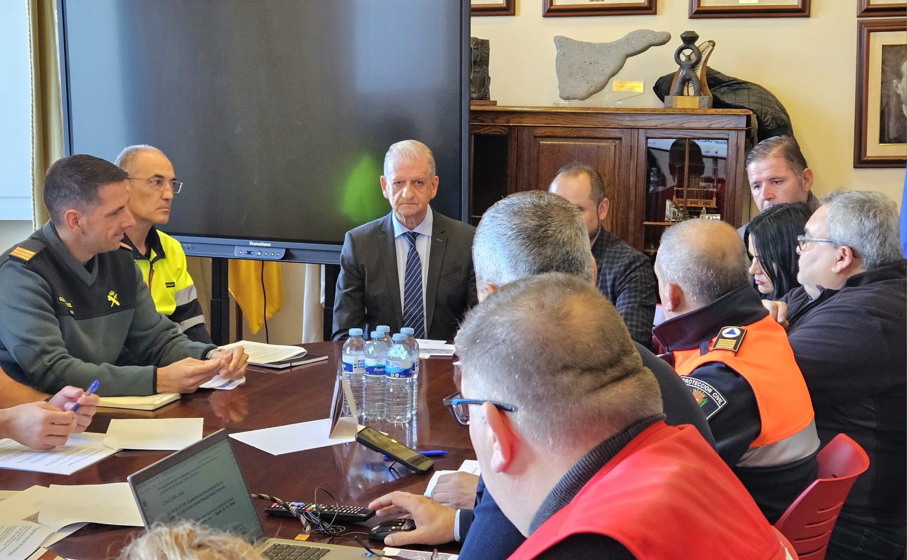 El alcalde Francisco Linares ha presidido la reunión de seguridad, celebrada estos días en las dependencias municipales, para tratar sobre el dispositivo de seguridad y tráfico para la Cabalgata de Reyes. En la reunión se contó con los ediles de Seguridad, Fiestas y Servicios, Narciso Pérez, Alexis Pacheco y Yurena Luis, respectivamente, así como con representantes de la Guardia Civil, Policía Local, Protección Civil, Cruz Roja, Canaragua y técnicos municipales.
