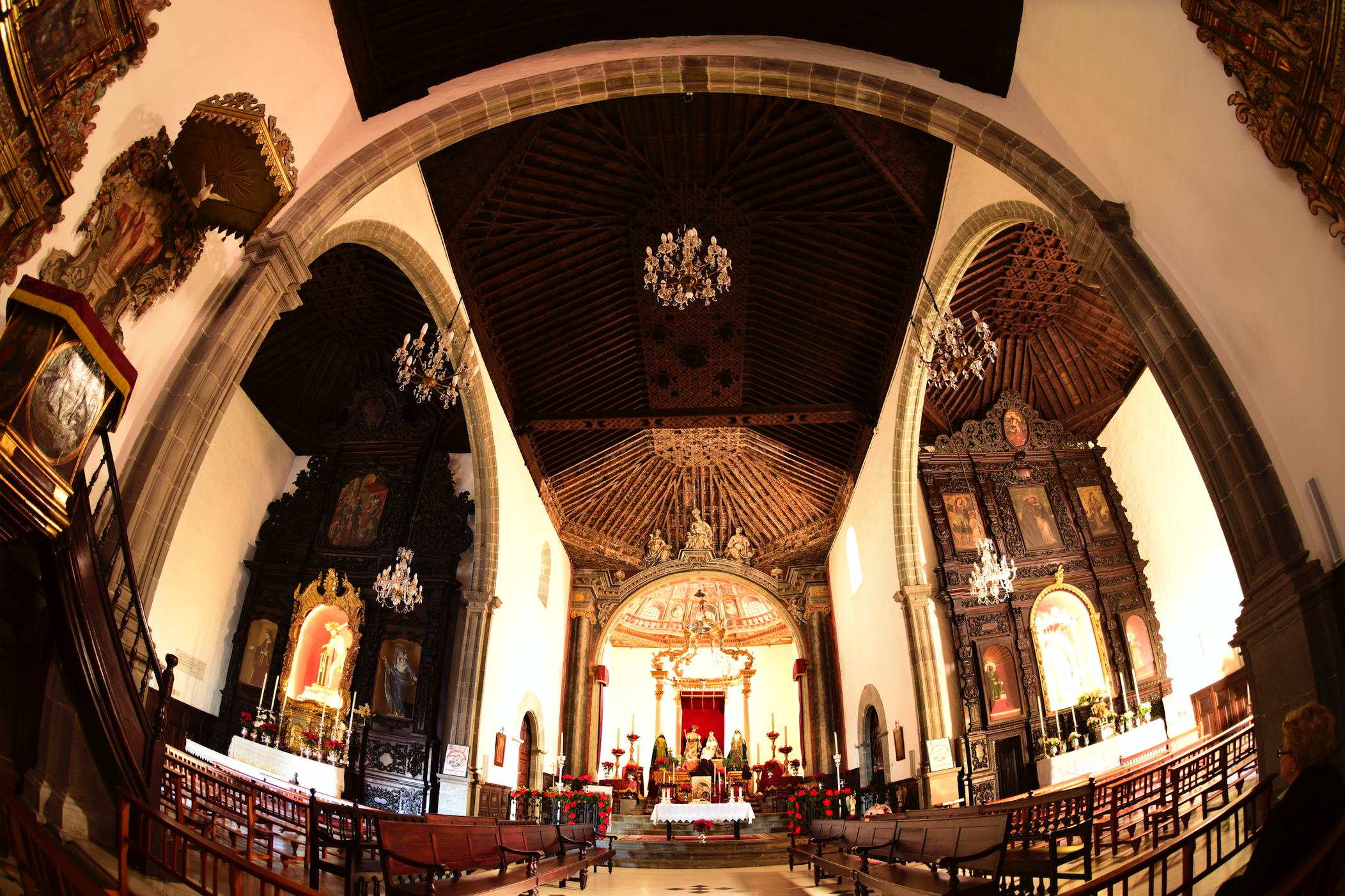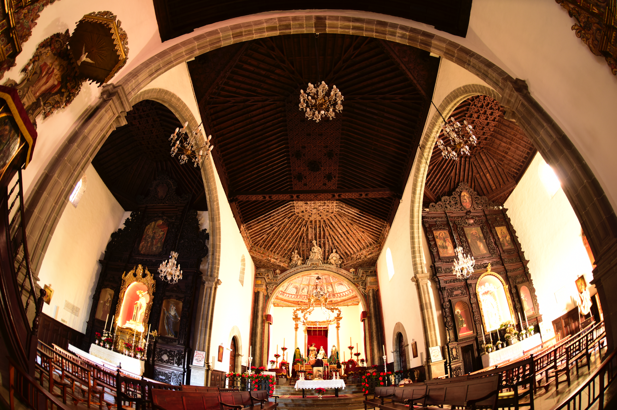 The San Juan Church is the largest single nave temple (Latin cross with two lateral chapels) of all the Canarian architecture. This temple is built on a cruciform plant that has its origin in a hermitage dated in 1608. The Blessed Sacrament was placed here in 1681 and the works of transformation of the small sanctuary into the present temple began in 1728. Its interior, covered by mudejar coffered ceilings, and the three nave space division, is in the fashion of the Tenerife island baroque style. The exterior is adorned with one of the most suggestive pinewood balconies of the Canary island’s, placed above a baroque door. Among the altarpieces, the San Juan Bautista (Saint John the Baptist) stands out most, and dates from the sixteenth century. Various sculptures of great merit are guarded in this temple, among which we will highlight the Cristo atado a la Columna (Christ tied to the Column), the most beautiful Andalusian Baroque sculpture in the Canaries, created by the great religious image maker Pedro Roldán, and the Virgen de la Gloria (Virgin of Glory) by José Luján Pérez. Among the pieces of precious metalwork we can find the urn of the Santo Entierro (Holy Burial), made of embossed silver, and two beautiful monstrances made of gilded silver and precious stones, one of them in rococo style.
