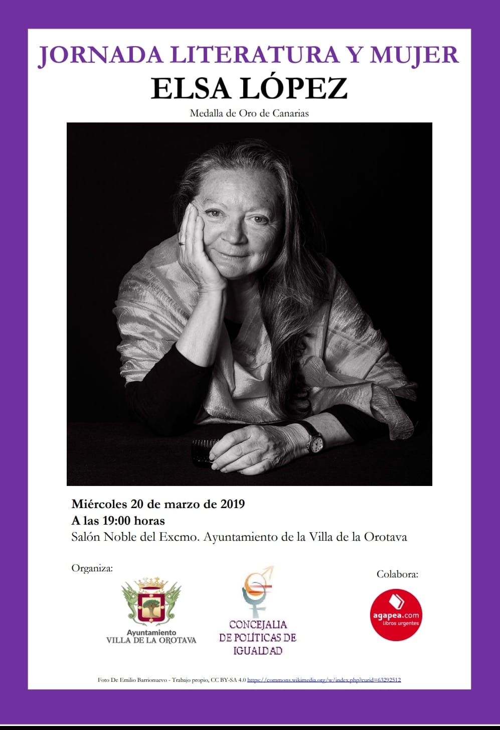 JORNADA LITERATURA Y MUJER Cuándo: Mié, 20 Marzo 2019 Dónde: Ayuntamiento de La Orotava politicas de igualdad