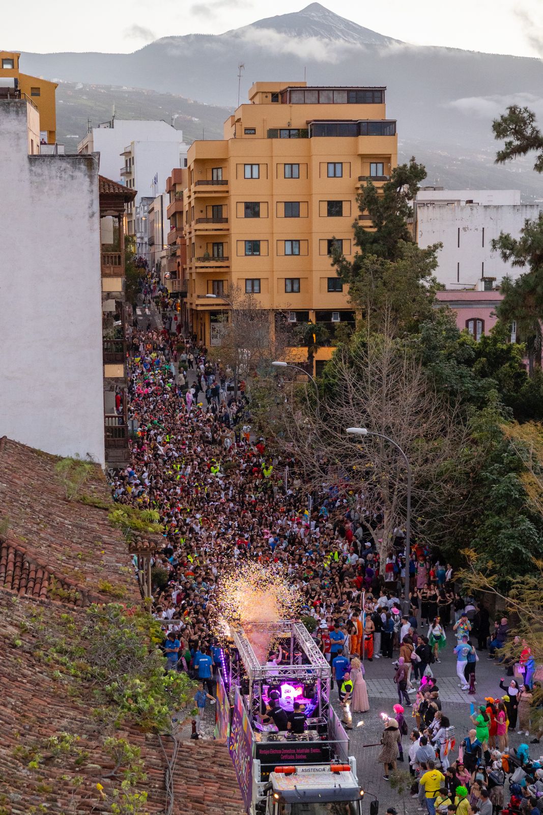 Entre otros colectivos se contó con las murgas Virgueritos, Trinkosos, Pizzicatos, Minivirgues, Los Tiralenguas, Las Diabólicas y Frikywikys; la rondalla Volcanes del Teide; las comparsas y batucadas los Villeros, Percusión Social Bloko La Orotava; Carabao Wayana; Barabere; Kanadu y Ay Caramba de Los Cristianos; las fanfarrias Peña El Casco y de Puerto de la Cruz; los grupos coreográficos Wild Dance, Vicente Oramas Díaz y Chaxiraxi; grupos de disfraces, carrozas temáticas y con música ambiente. En el desfile se contó con coches engalanados y la guagua-discoteca a la que siguieron miles de jóvenes. El alcalde Francisco Linares y el concejal de Fiestas, Alexis Pacheco, junto a otros miembros de la corporación municipal, participaron en el coso.