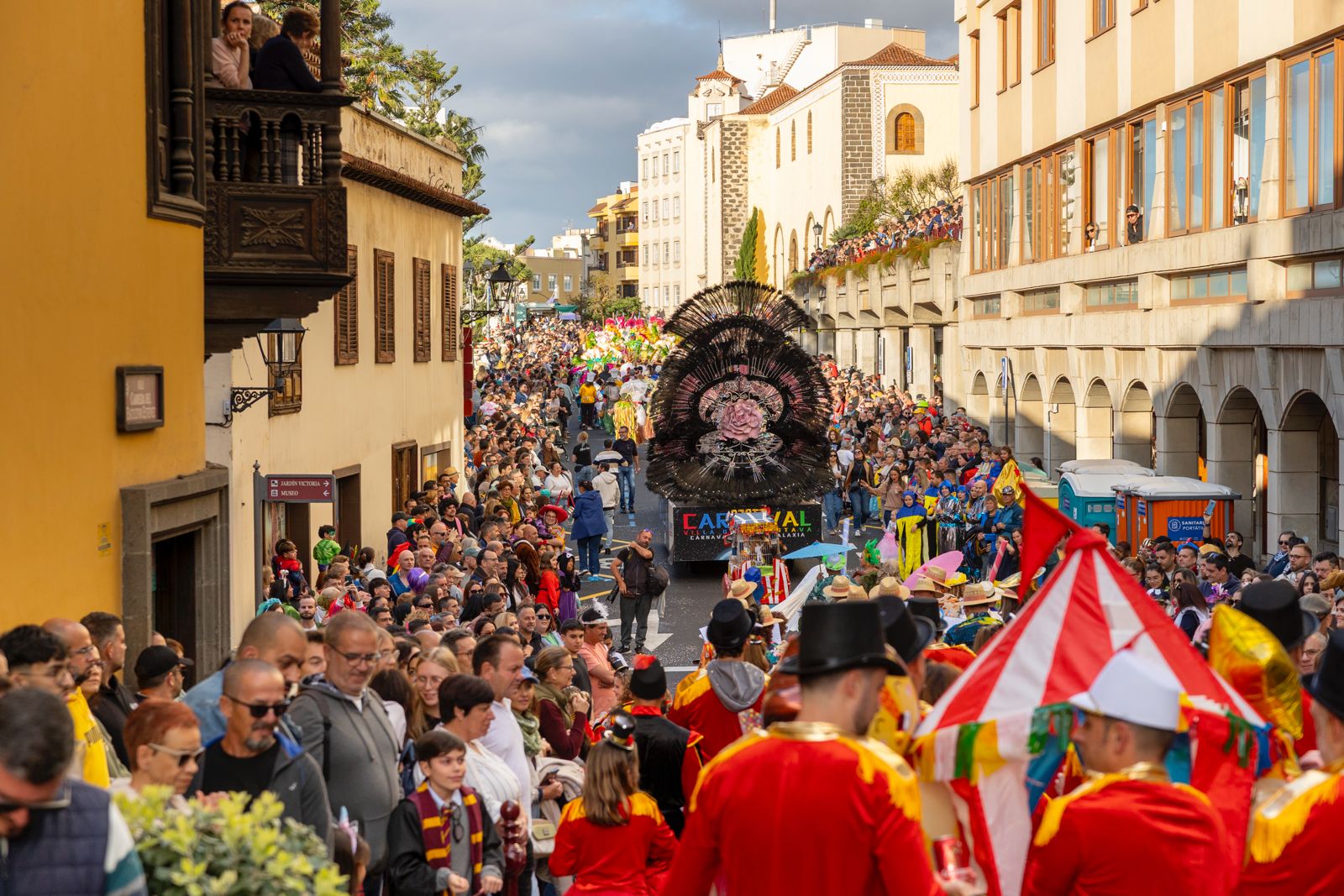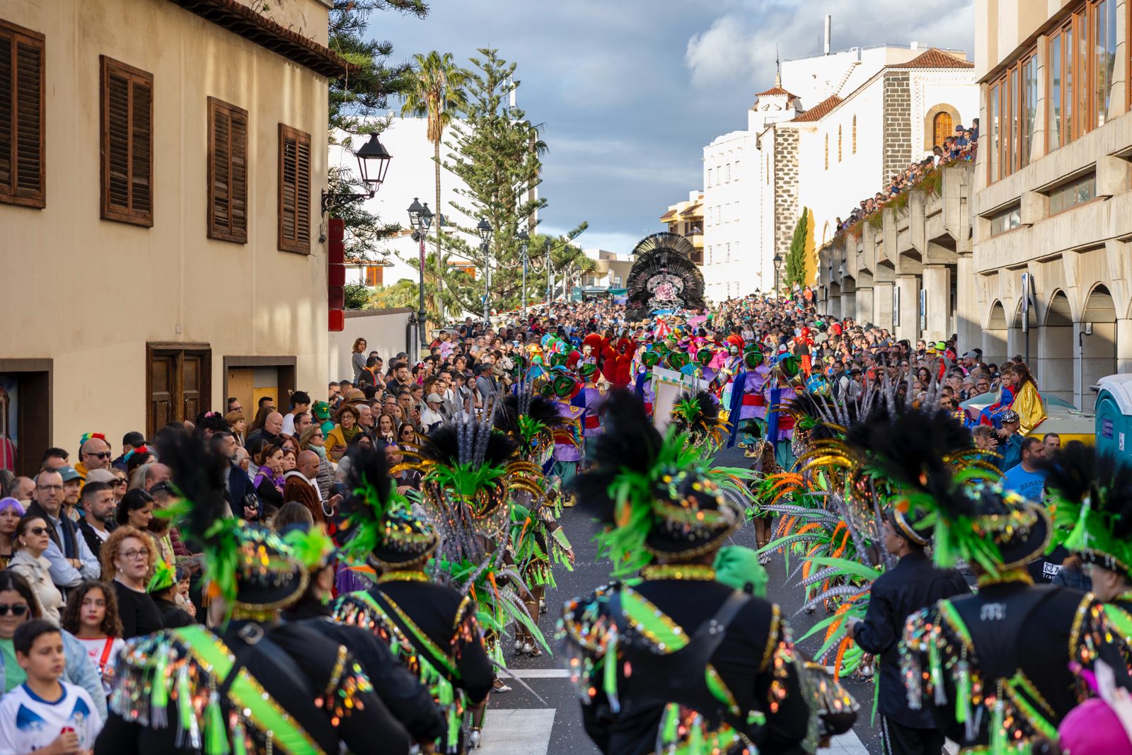 Tras el cambio desde el pasado martes para este domingo debido a las inclemencias del tiempo, el desfile multicolor y cargado de ritmo y armonía volvió a ser todo un éxito contándose con la participación de cerca de 20.000 personas. En el coso, que partió sobre las cinco de la tarde de la Cruz del Teide y culminó casi tres horas después en la plaza de la Paz en el Calvario, se contó con más de medio centenar de colectivos carnavaleros como las comparsas, murgas, fanfarrias, rondallas y grupos coreográficos procedentes de distintos puntos de la isla, así como numerosos espontáneos y grupos de amigos.