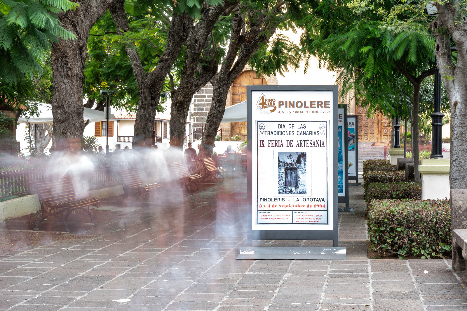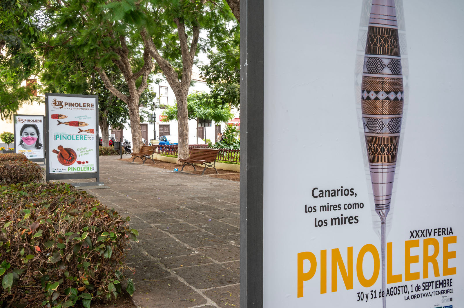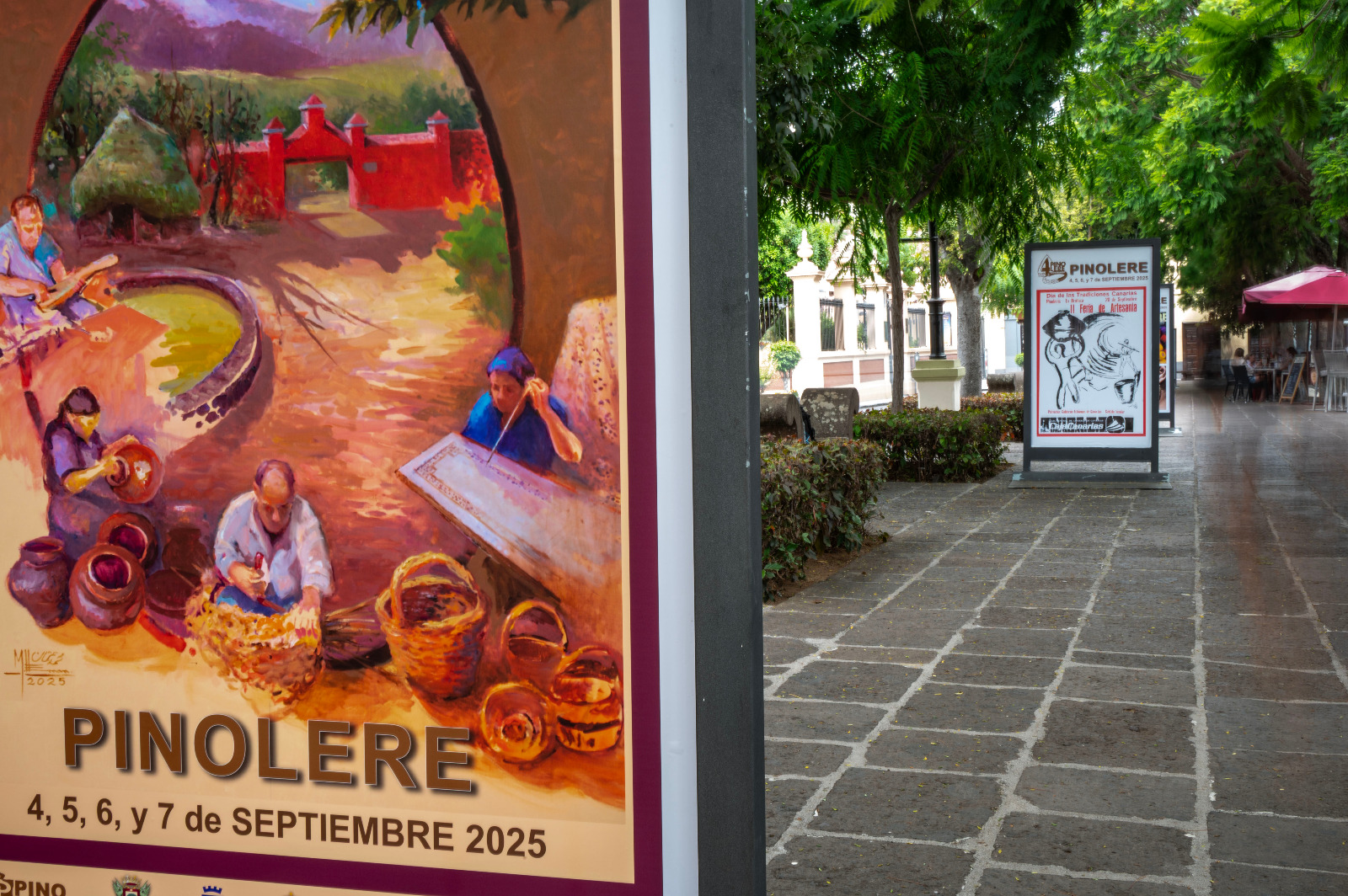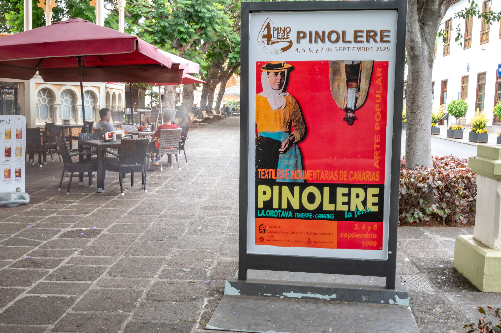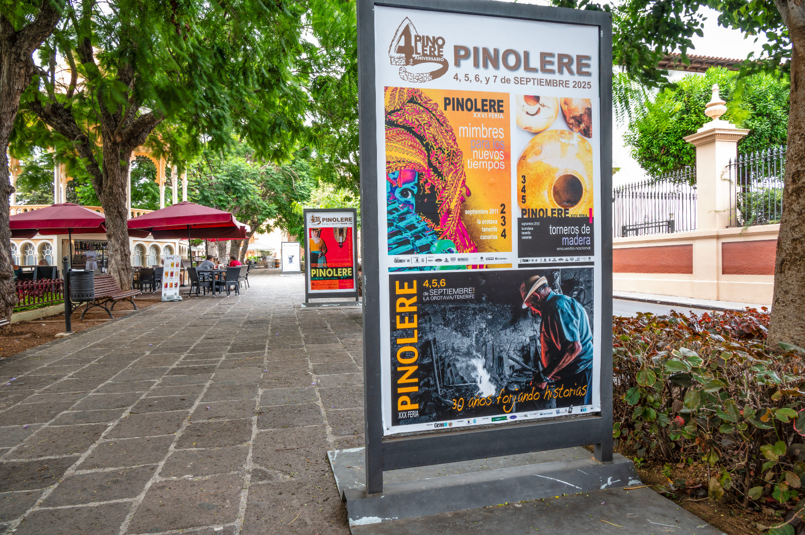 La plaza de La Constitución de La Orotava acoge una Exposición de los carteles de la Feria de Pinolere que han marcado su existencia y devenir... José Luis de León Torres, Rafael C. Gómez León, Toño Mesa, Chano Díaz, Yapci Gomez Lima o Mohamed Osman son algunos de los autores de esta colección de imágenes que puedes disfrutar al aire libre hasta el próximo 8 de septiembre de 2025... #40añosdepinolerelaferia