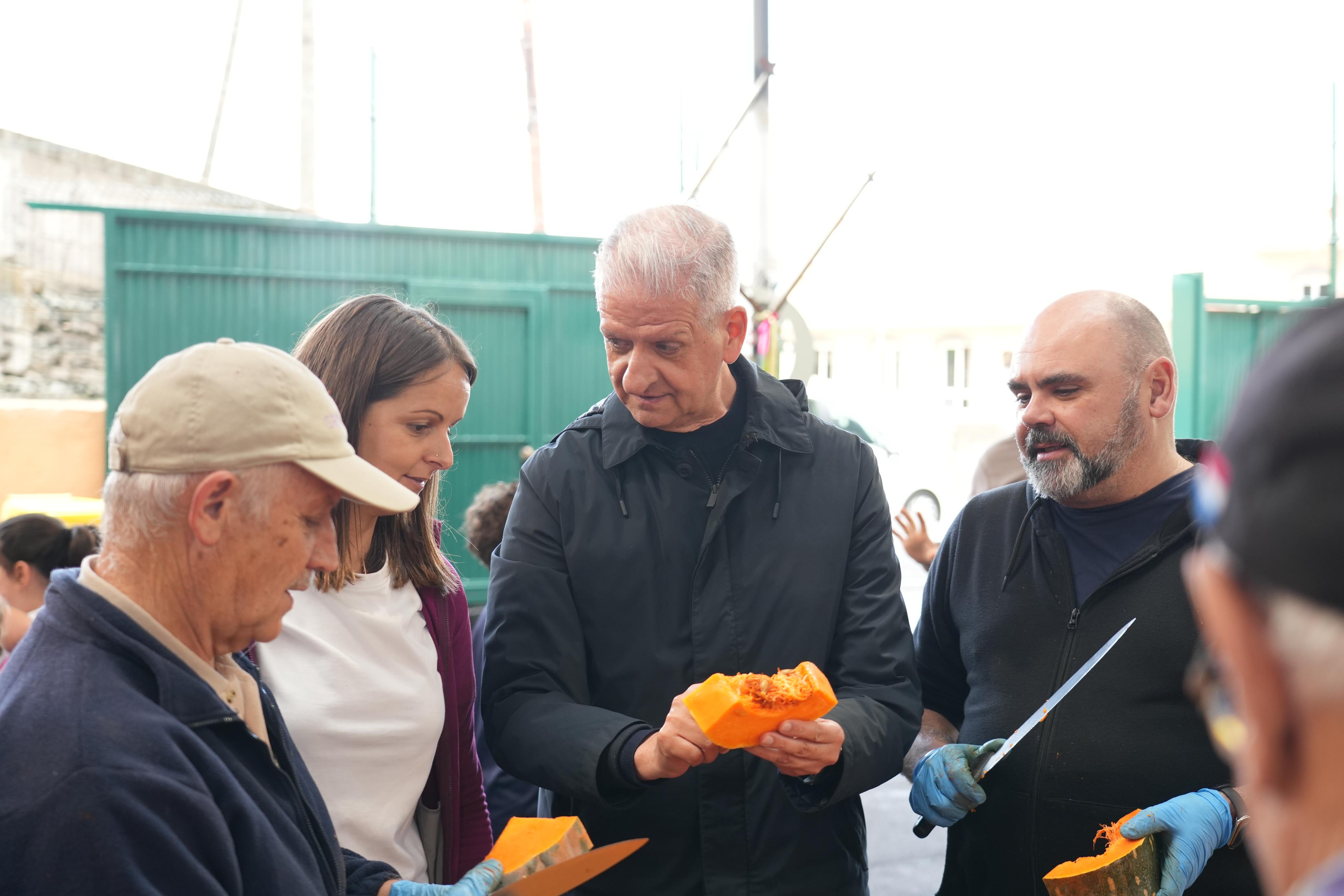En la jornada de este día previo, 24 de enero, se dan cita unos 130 voluntarios de todas las edades y más de un centenar de alumnos y alumnas del CEIP Leoncio Estévez Luis. Todos se afanaron en la mañana de hoy para dejar preparados todos los ingredientes que se utilizarán en el gran puchero que se podrá al fuego este sábado en unos 70 calderos de grandes dimensiones, y que darán a comer a más de 5.000 personas. El reparto será a partir de las 14.00 horas, después de la celebración de la LIII Feria de ganado y la misa.