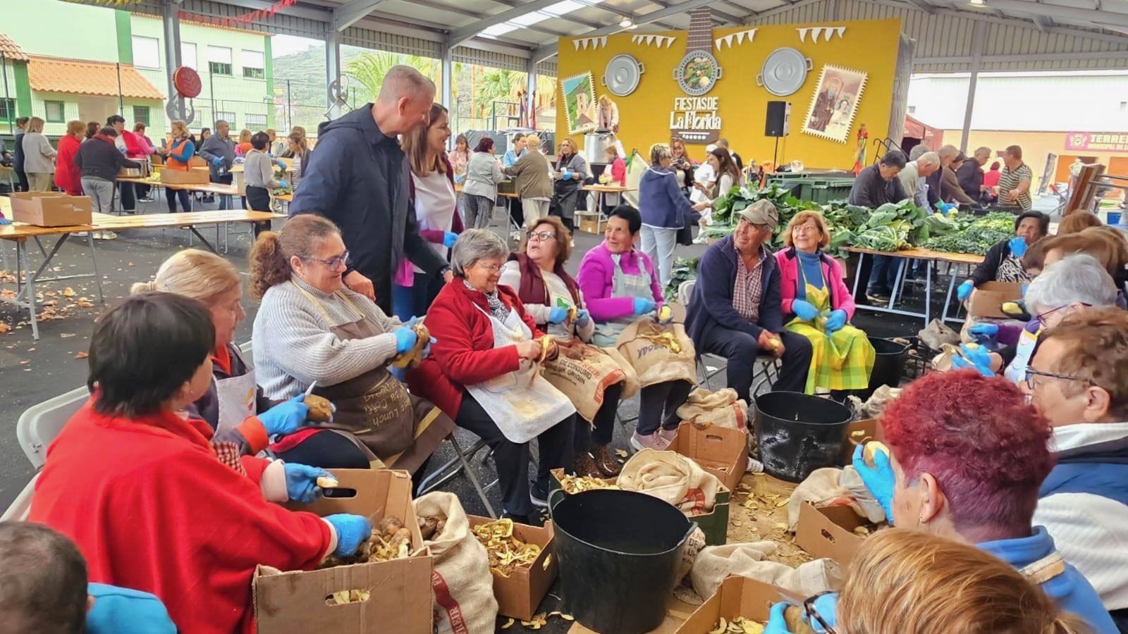 Los vecinos del emblemático barrio orotavense de La Florida se han vuelto a volcar en la preparación del popular puchero que se cocinará este sábado 25. Se espera que este evento gastronómico, referente en Canarias, vuelva a ser un acto multitudinario como en cada edición. También se espera contar con la presencia de autoridades regionales, locales e insulares, como el presidente del Gobierno de Canarias, Fernando Clavijo; Rosa Dávila, presidenta del Cabildo insular, y el alcalde de la Villa, Francisco Linares, entre otros. El Puchero se elaborará y disfrutará en el solar que se localiza frente al campo de fútbol del barrio.