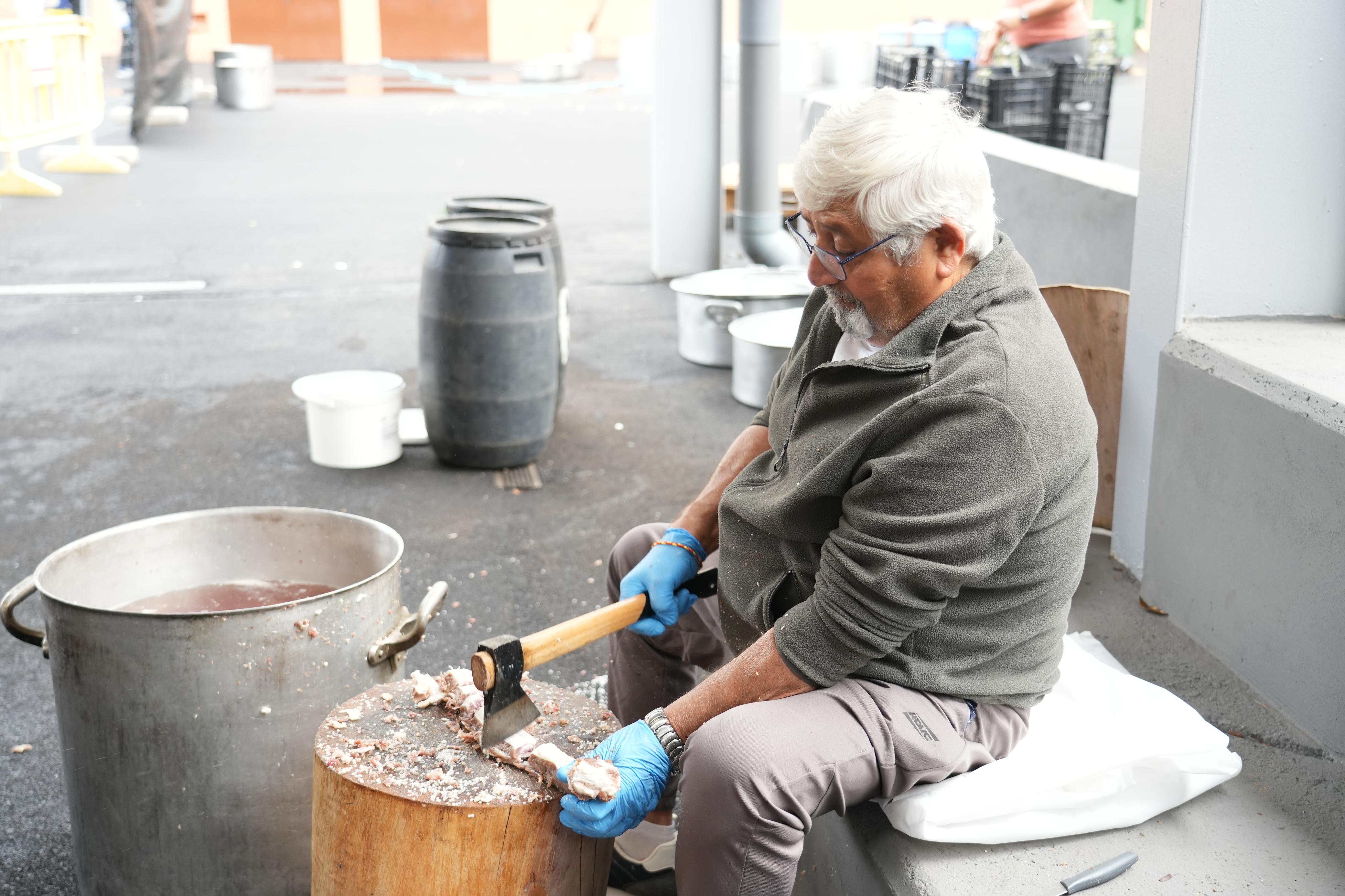 130 voluntarios y un centenar de alumnos del colegio del barrio preparan el guiso que se reparte este sábado 25 de enero