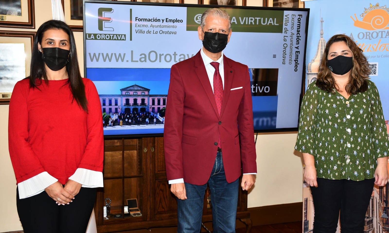 El alcalde de La Orotava, Francisco Linares, y la concejala delegada de Formación y Empleo del Ayuntamiento villero, Deisy Ramos, han hecho balance de trabajo que se ha realizado en este último año en formación, además de presentar alguna de las nuevas propuestas para el 2022. Así se contó también con la directora de la entidad Generación 21, encargada de la gestión de los cursos, Nuria Vera.
