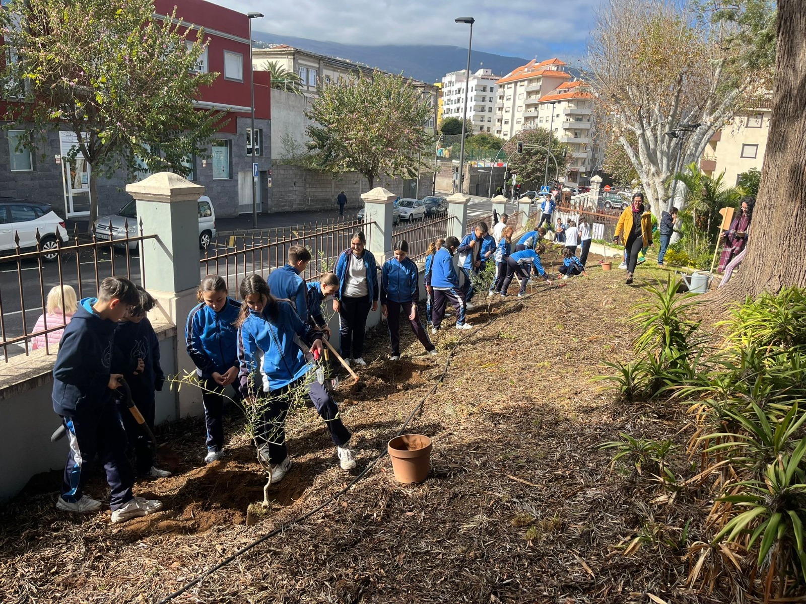 La iniciativa europea también pretende involucrar a la juventud en los procesos de toma de decisiones que afectan la sostenibilidad, por lo que también se implica a los escolares del municipio. Por todo ello, este jueves 21 de marzo, Día Mundial del Árbol, medio centenar de escolares de primaria y secundaria del colegio de La Milagrosa han plantado 21 árboles en una de las zonas verdes del Parque Cultural y Agromedioambiental de Doña Chana. Las especies plantadas en esta actividad son autóctonas como acebuches, fayas y cedros canarios.