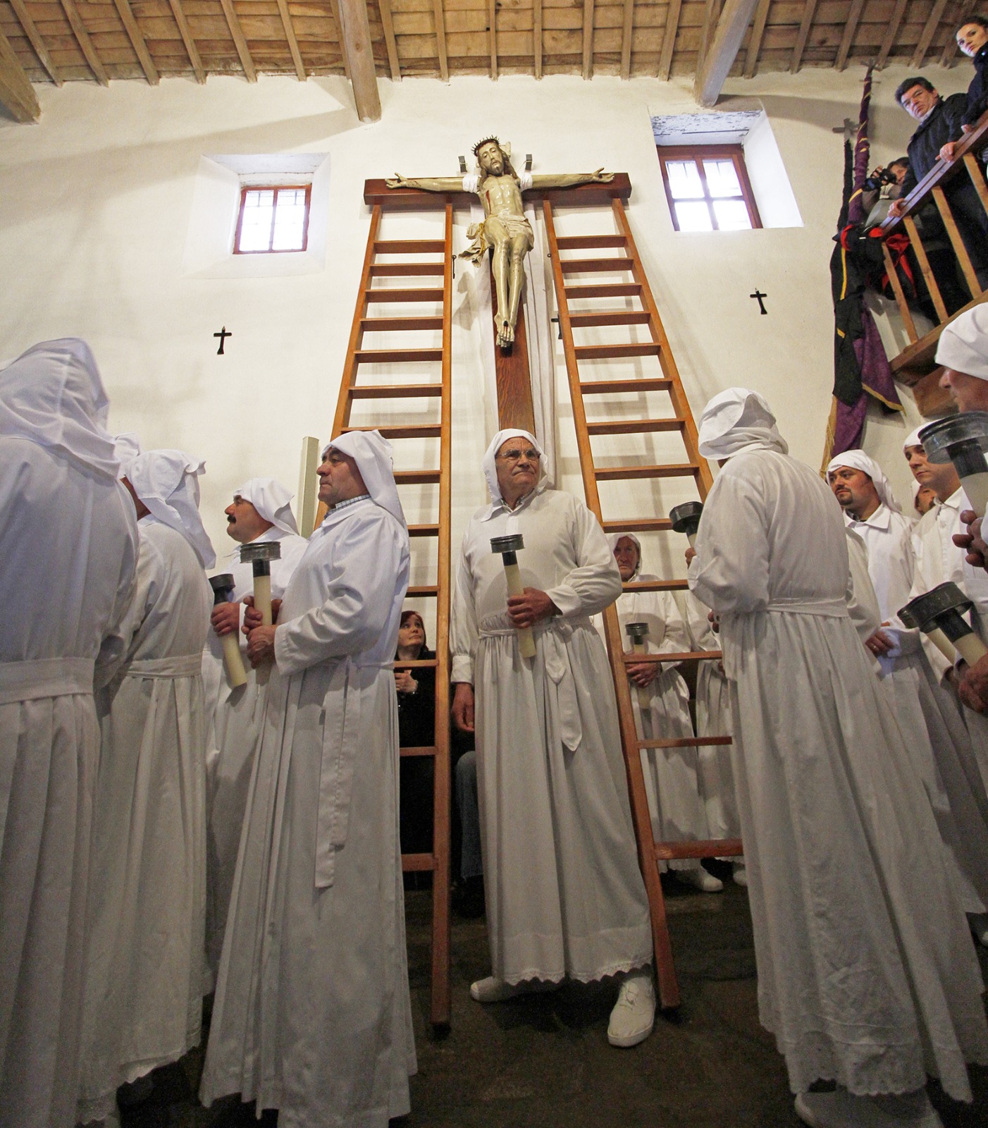 Otra de las poblaciones visitadas fue Bercianos de Aliste, una localidad zamorana de apenas 124 habitantes que ha sabido conservar intacta la tradición de representar cada año la pasión y muerte de Cristo. En ella, además, hay dos actos que convierten a este pequeño pueblo en uno de los que cuentan con las celebraciones más curiosas de España, la procesión de las capas pardas alistanas que tiene lugar la tarde del Jueves Santo, y la ceremonia del descendimiento y Santo Entierro, en los que los cofrades se atavían con las mortajas con que serán enterrados.