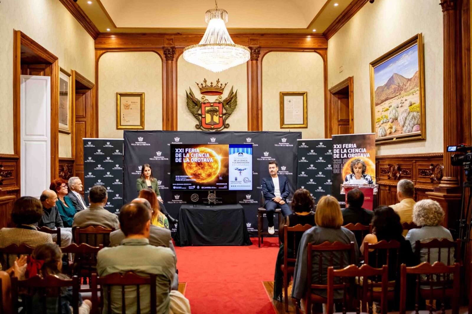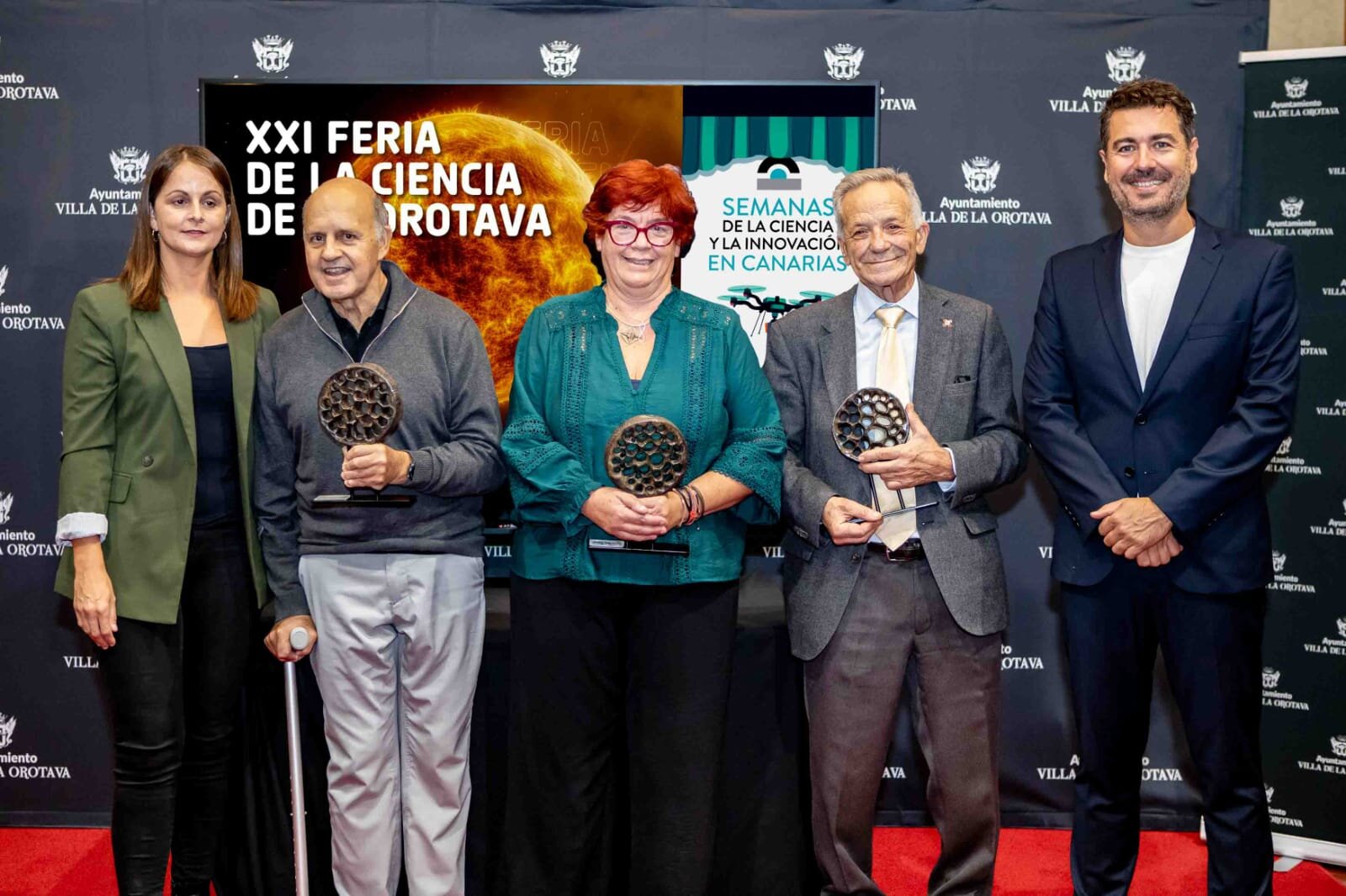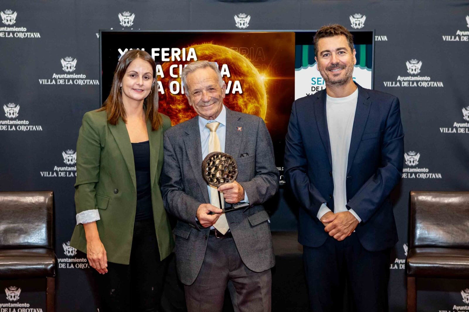El director del evento, Juanjo Martín, apuntó que ya el pasado año se creó el ‘Premio Feria de la Ciencia de La Orotava’ con el fin de tener un gesto de agradecimiento con todas las personas e instituciones que trabajan cada día para acercar la ciencia a la ciudadanía y para poner a las islas en el foco de la ciencia internacional, ya que no hay distinción de estas características en Canarias. Este año se celebró la segunda edición, otorgándose tres categorías. En Investigación a Emilio Cuevas, exdirector del Observatorio Atmosférico de Izaña; en Divulgación a Edith Padrón, profesora de Matemáticas en la ULL, y en Enseñanza de las Ciencias a Luis Balbuena, también profesor de Matemáticas. El Salón Noble del Ayuntamiento de La Orotava acogió este jueves 7 el acto de entrega de premios.