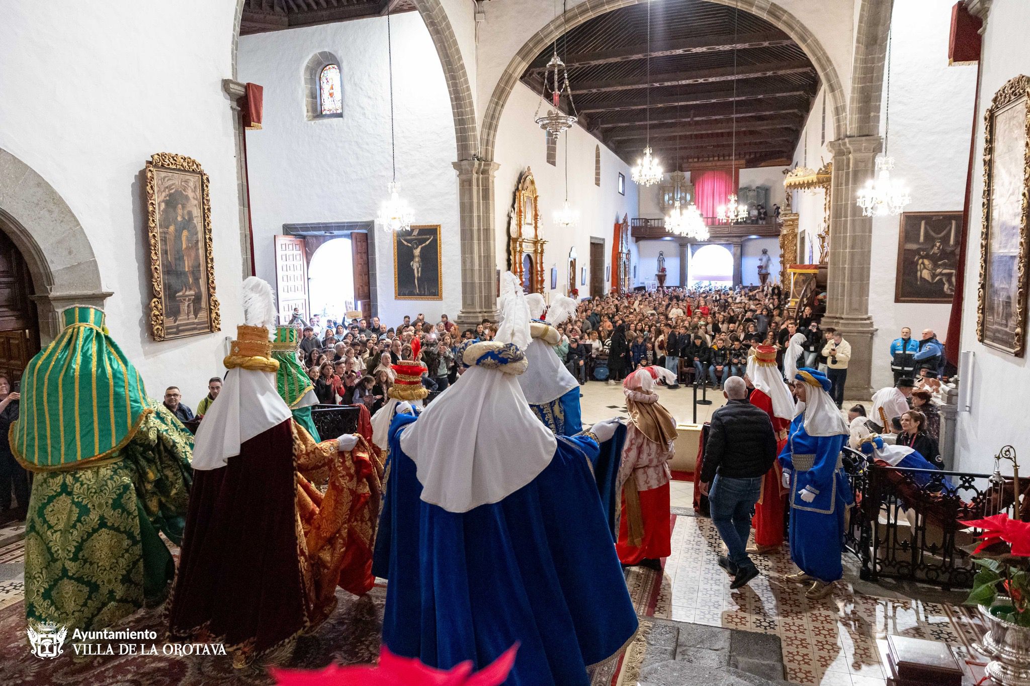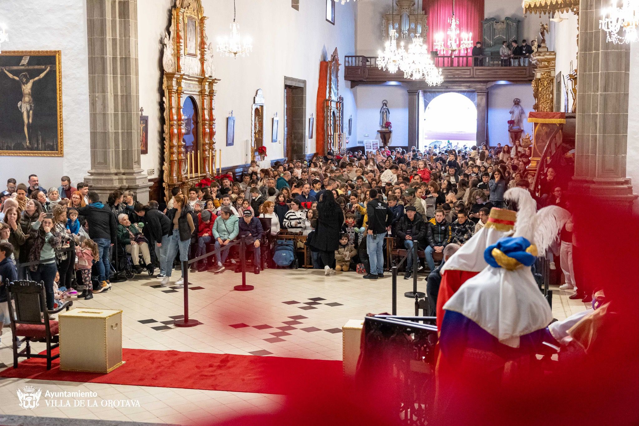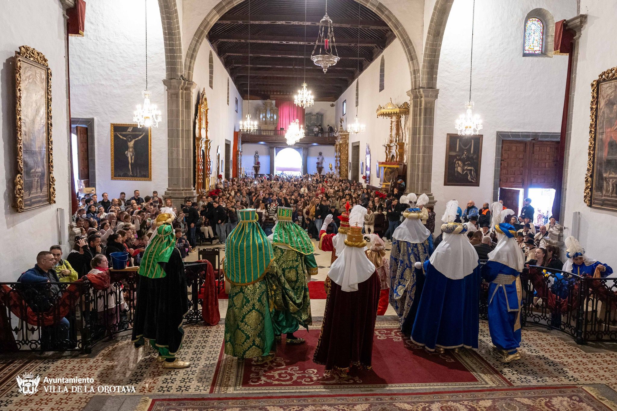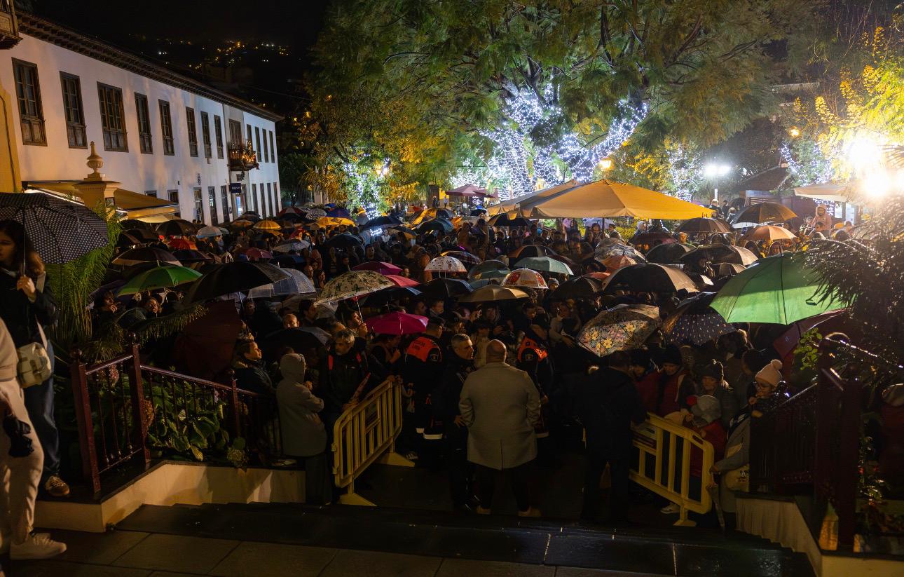 A pesar de las fuertes lluvias a lo largo de toda la jornada, los emperadores de Oriente visitaron el municipio de La Orotava. Aunque no pudieron realizar su tradicional cabalgata por el centro urbano para culminar en la plaza del Ayuntamiento, sí se acercaron a las parroquias de San Juan Bautista y San Agustín para recibir a los numerosos niños y niñas, acompañados de sus familiares, que esperaban para entregar sus cartas.